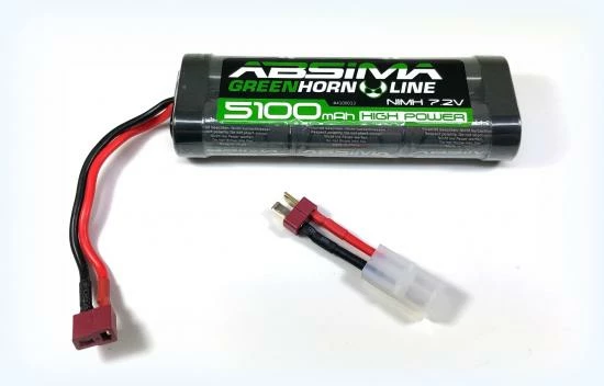 ABSIMA presents a new generation of powerful NiMH stickpacks. Outstanding power delivery – and a completely new race design. All battery packs are supplied pre-assembled and ready-to-use including a Deans (T-plug) connector and a Tamiya style adapter to make it most comfortable for the user. The high-quality cells have a single cell shrinkage and are fast-chargeable.
